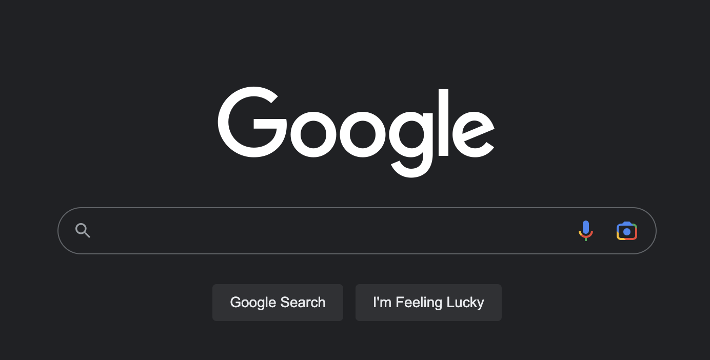 Google isn't just a consumer product. It's also a tool for B2B research with a simple but effective UX-copy pairing. One search bar, two CTA buttons and two clickable icons, only six words including the logo.