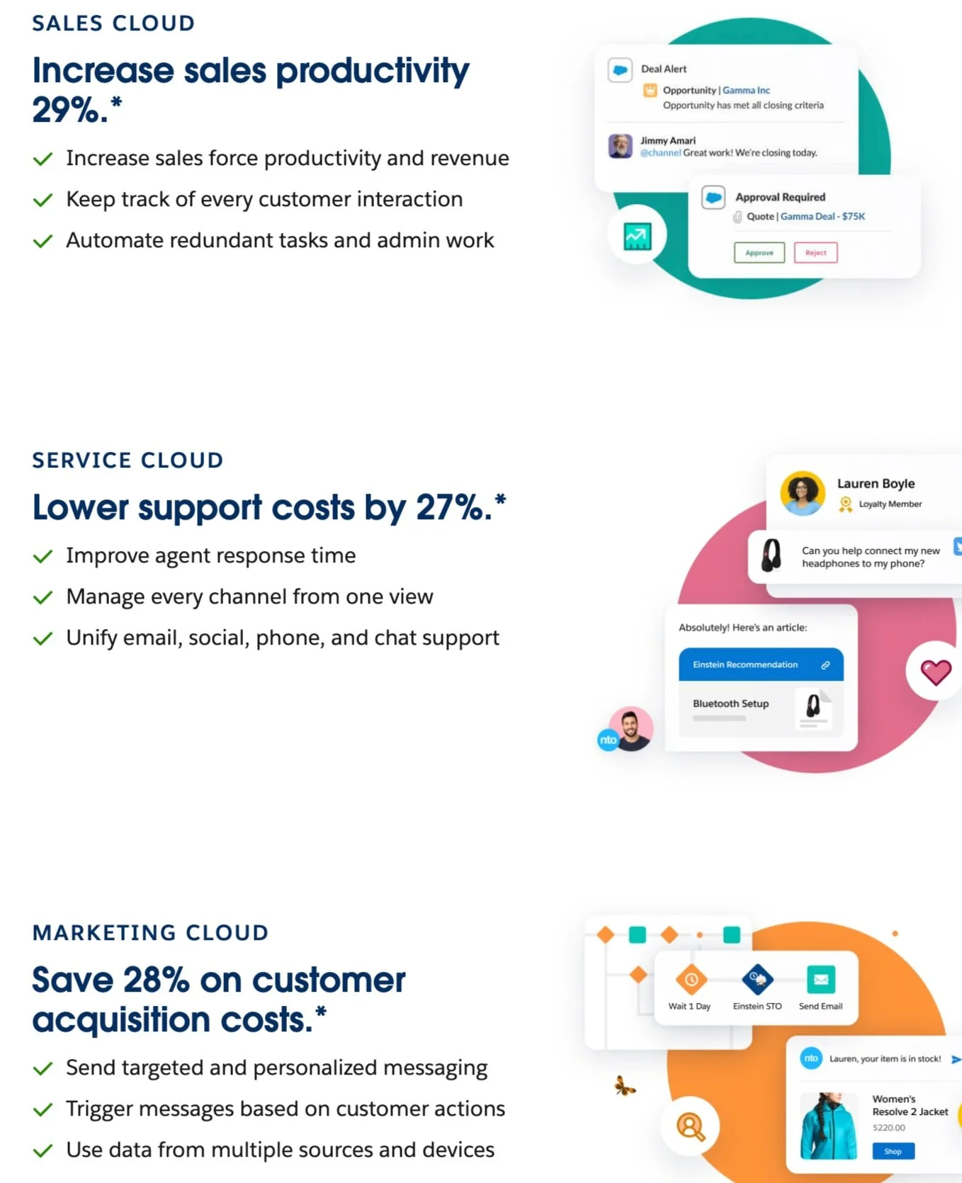 Low productivity, high support costs, and expensive customer acquisition are familiar pain points for the target market of Salesforce.