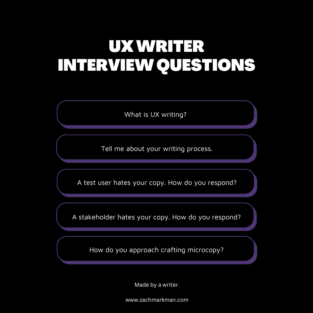 This is not a trick question. Listen for an intelligent explanation of how content strategy, UX design, and concise copy are all part of the UX writing process. Ideally you want to hear signs of design thinking (how the microcopy contributes to the overall structure of the interface and the information architecture), a larger content strategy that informs every creative choice, and an excitement to contribute on a fast-moving product design team.